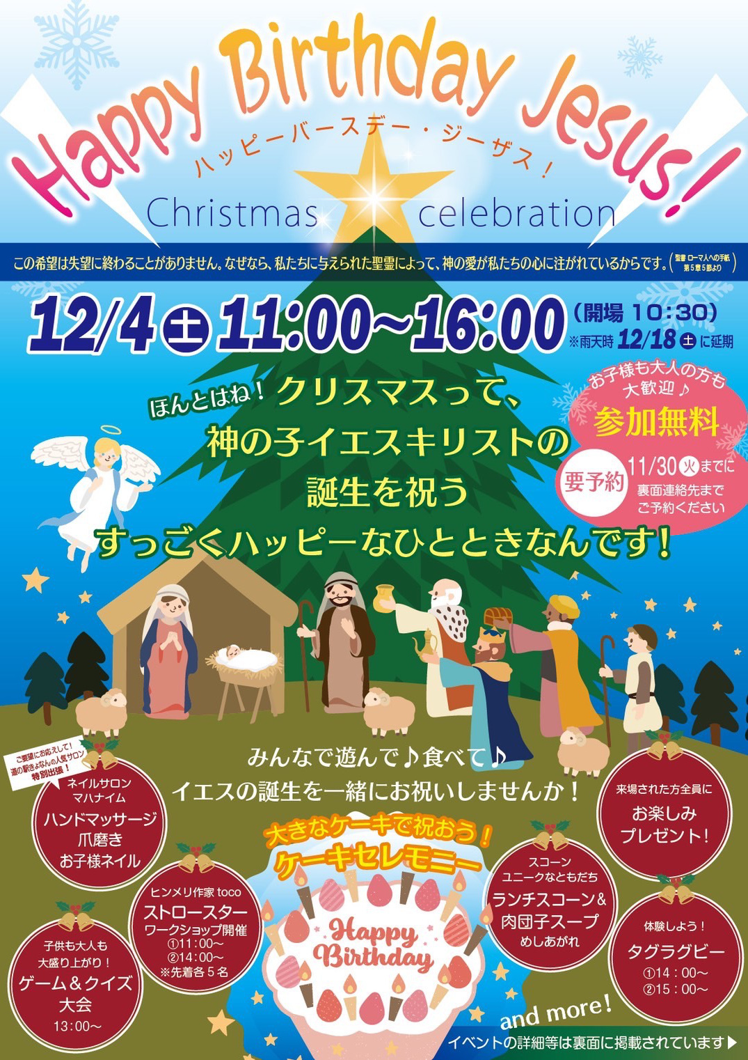 Happy Birthday Jesus!イエス・キリストが生まれた事を祝うハッピーなひととき!是非ご参加ください!(画像クリックorタップして詳細ご覧ください)